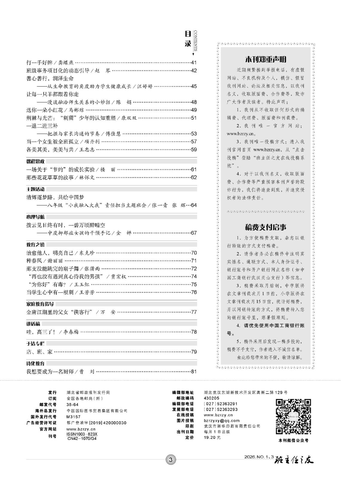 【目录】《班主任之友》2026年1-2月上半月刊